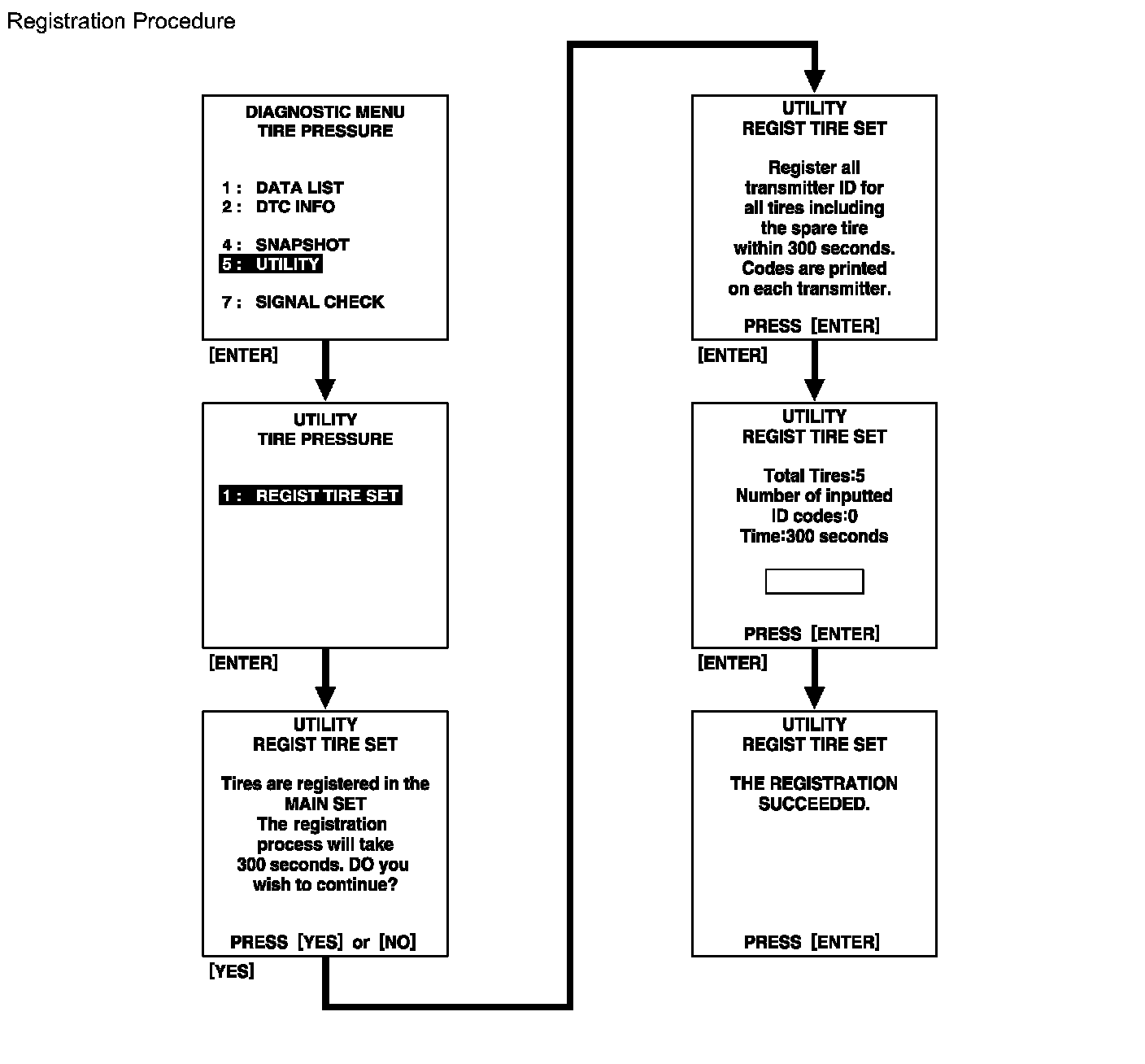 e. *2: Select REGIST TIRE SET following the intelligent tester screen (UTILITY - REGIST TIRE SET).