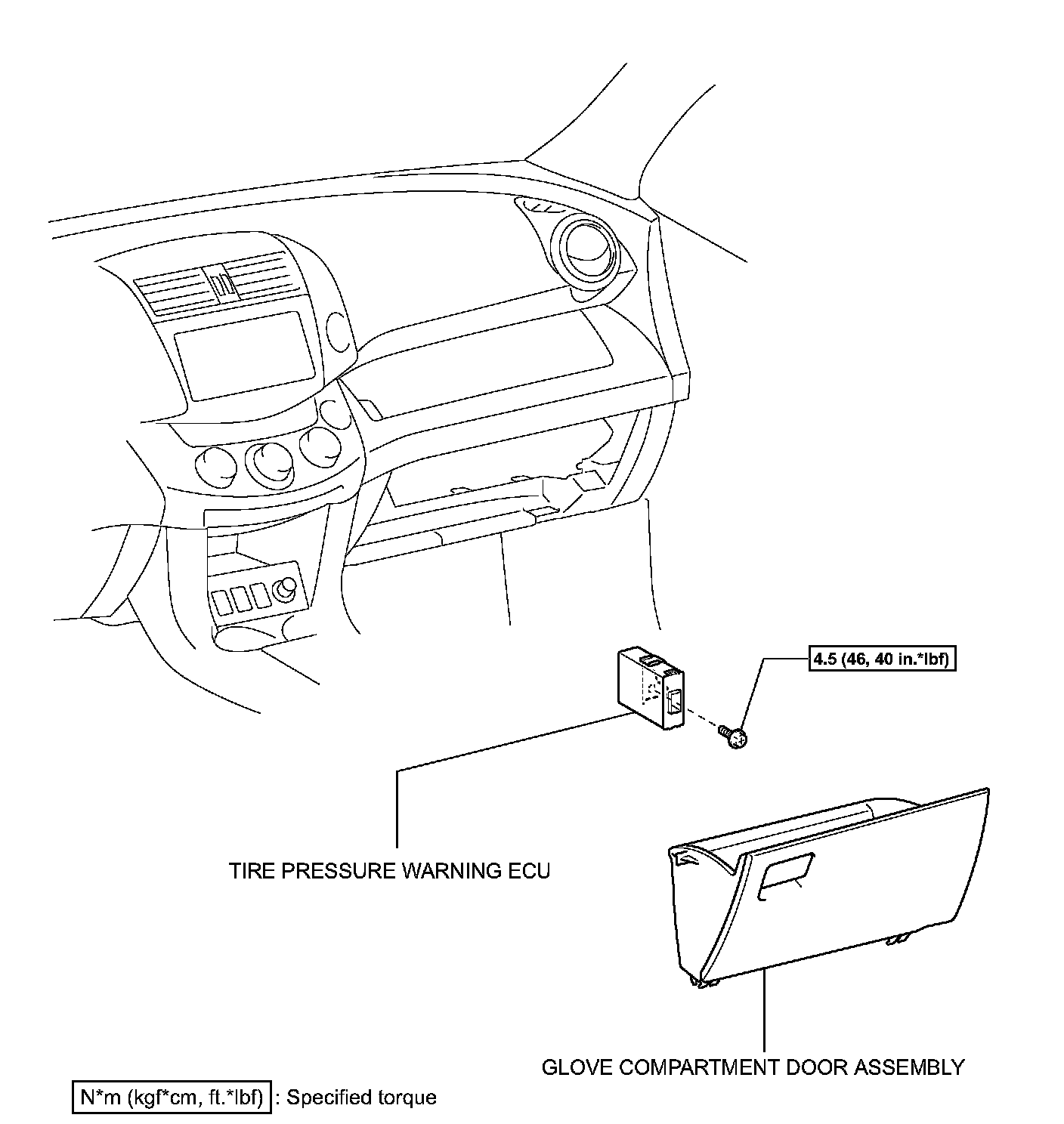 Torque: 4.5 Nm (46 kgf-cm, 40 inch lbs.)
