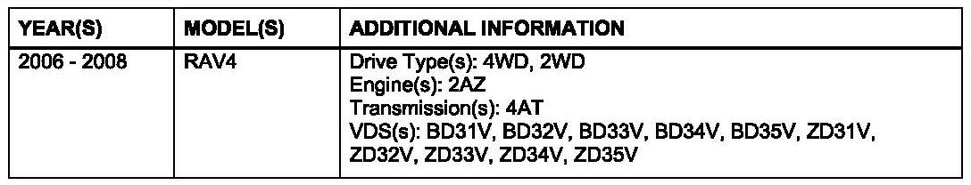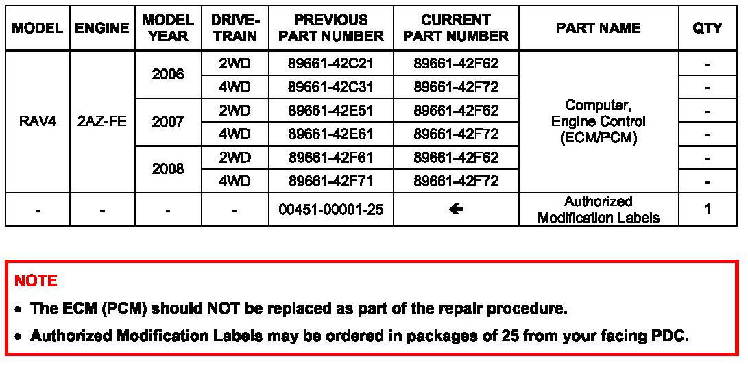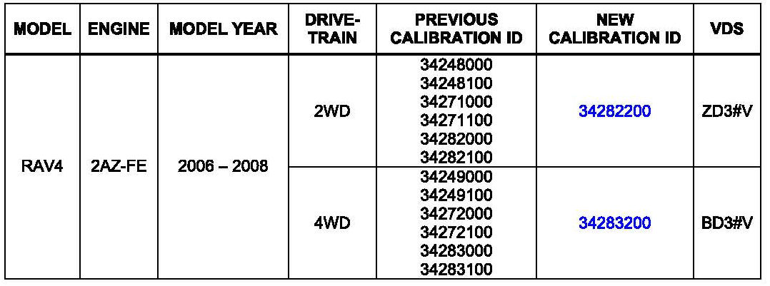 Some 2006-2008 model year RAV4 vehicles equipped with 2AZ-FE engines may exhibit a MIL "ON" condition with Diagnostic Trouble Code (DTC) P0456 - Evaporative Emission Control System Leak Detected (Very Small Leak) The Engine Control Module/ECM (SAE term: Powertrain Control Module/PCM) logic has been modified to reduce the possibility af this condition occurring. Use the following repair procedure to address this condition.