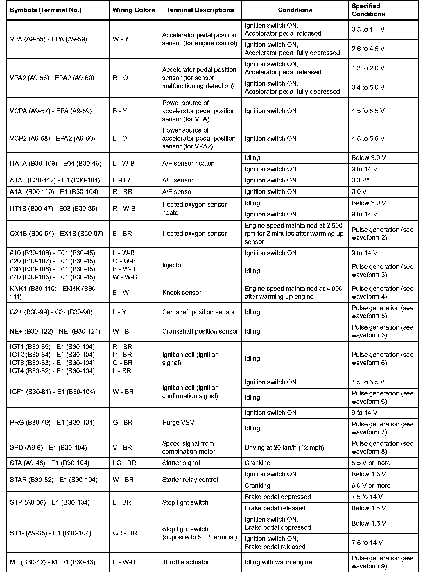 Pinout Values and Diagnostic Parameters