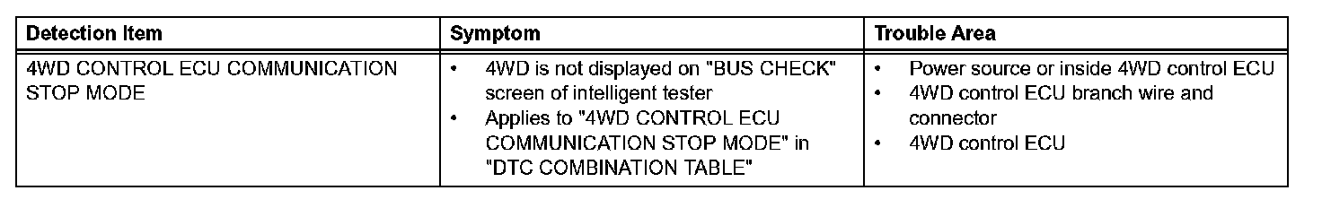 4WD Control ECU Communication Stop ModeDetection Item: