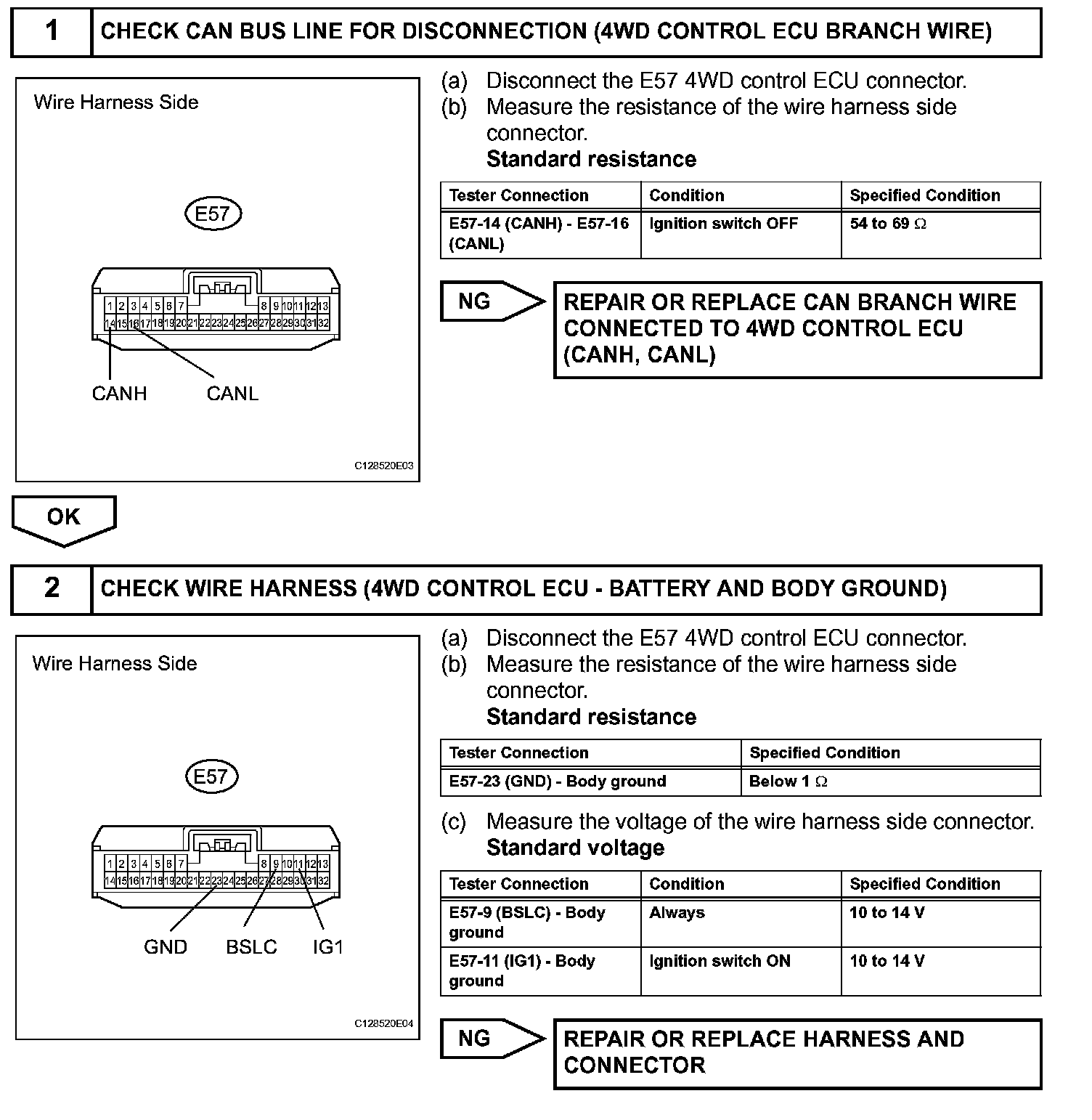 - Turn the ignition switch OFF before measuring the resistances of the main wire and the branch wire.