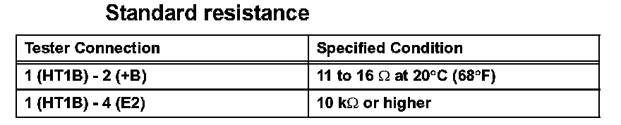 If the resistance is not as specified, replace the sensor.