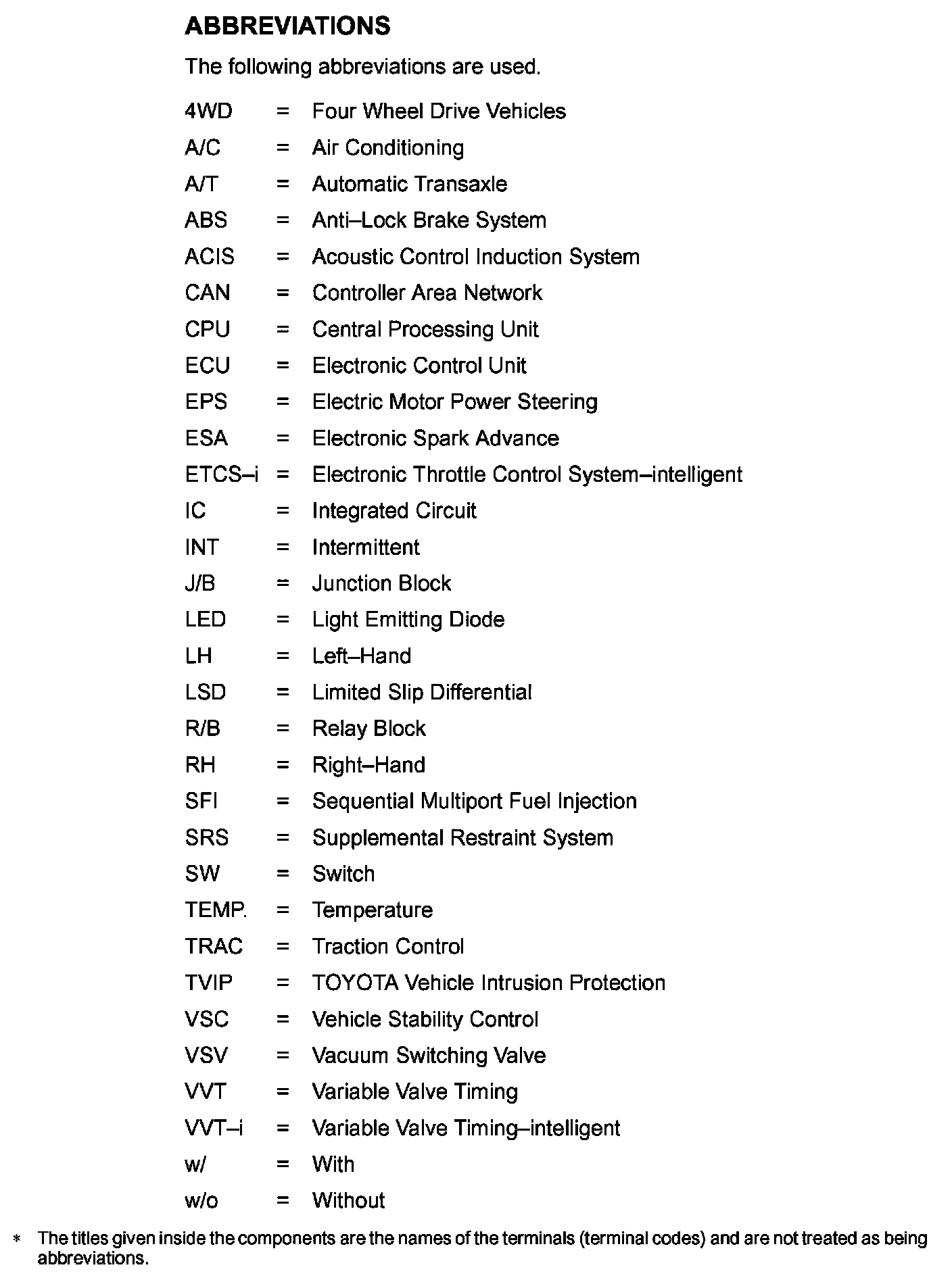 Abbreviations Used Within Diagrams