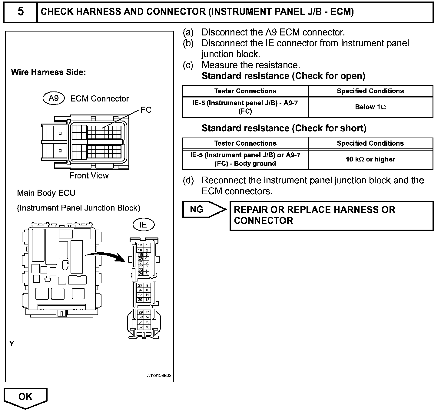 While the NE signal is input into the ECM, when the engine is running, the ECM turns the Tr1 on continuously.