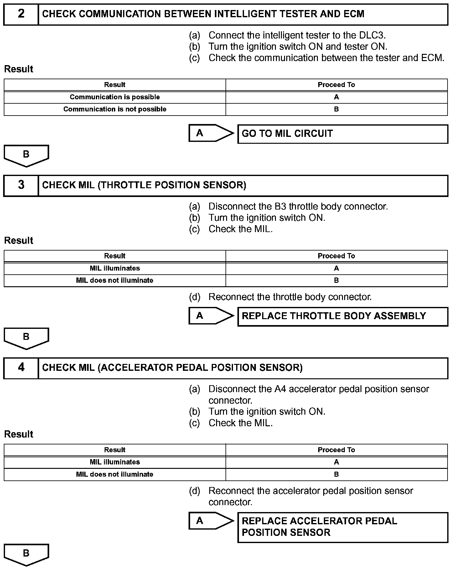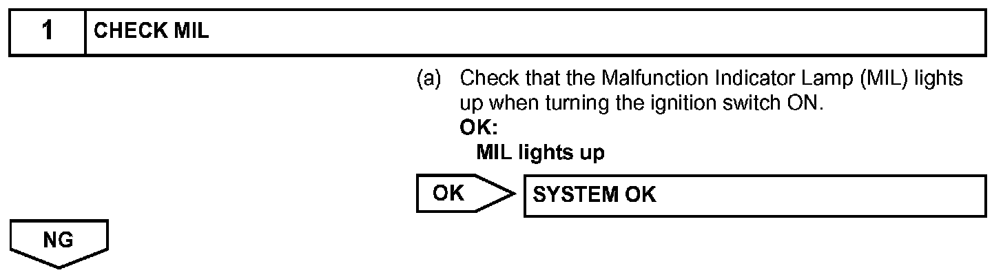 HINT: Under normal conditions, the MIL is illuminated for several seconds when the ignition switch is first turned ON. The MIL goes off when the engine is started.