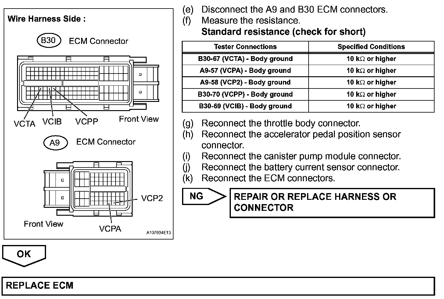 When the VC circuit is short-circuited, the microprocessor in the ECM and sensors that are supplied with power through the VC circuit are inactivated because the power is not supplied from the VC circuit. Under this condition, the system does not start up and the MIL does not illuminate even if the system malfunctions.