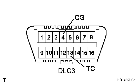 (5) Using SST, connect terminals 13 (TC) and 4 (CG) of the DLC3.
