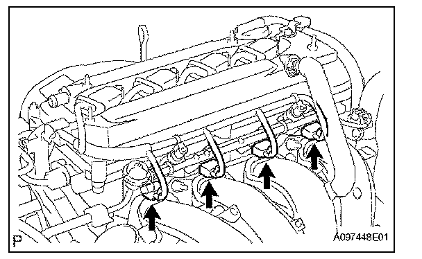 4. Disconnect the 4 fuel injector connectors.