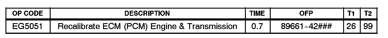 ^ If the Calibration ID matches the "New Calibration ID" as shown in the Calibration Identification Chart, this vehicle has already been programmed. Refer to the Technical Information System (TIS) for diagnostic procedures applicable to any stored DTCs.