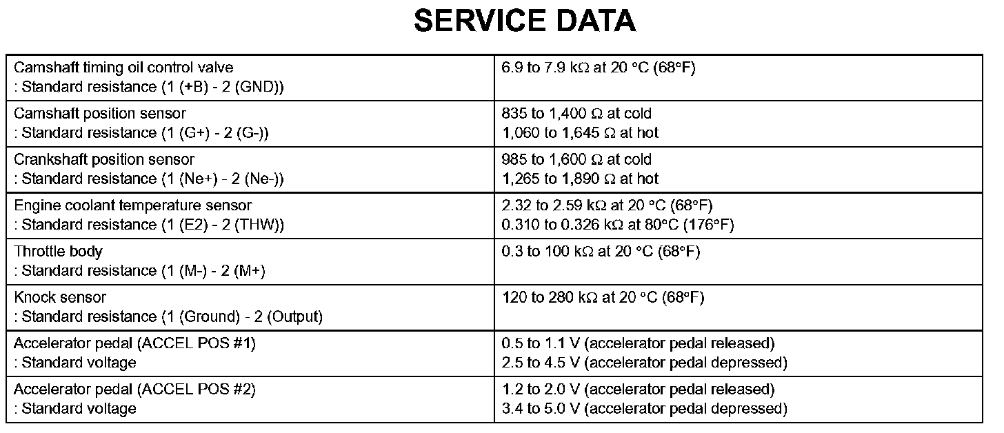 Engine Control System-Service Data: