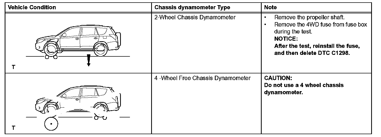When performing measurements using high speed, high-load on chassis dynamometer, observe the following instructions and then measure with the front wheels.