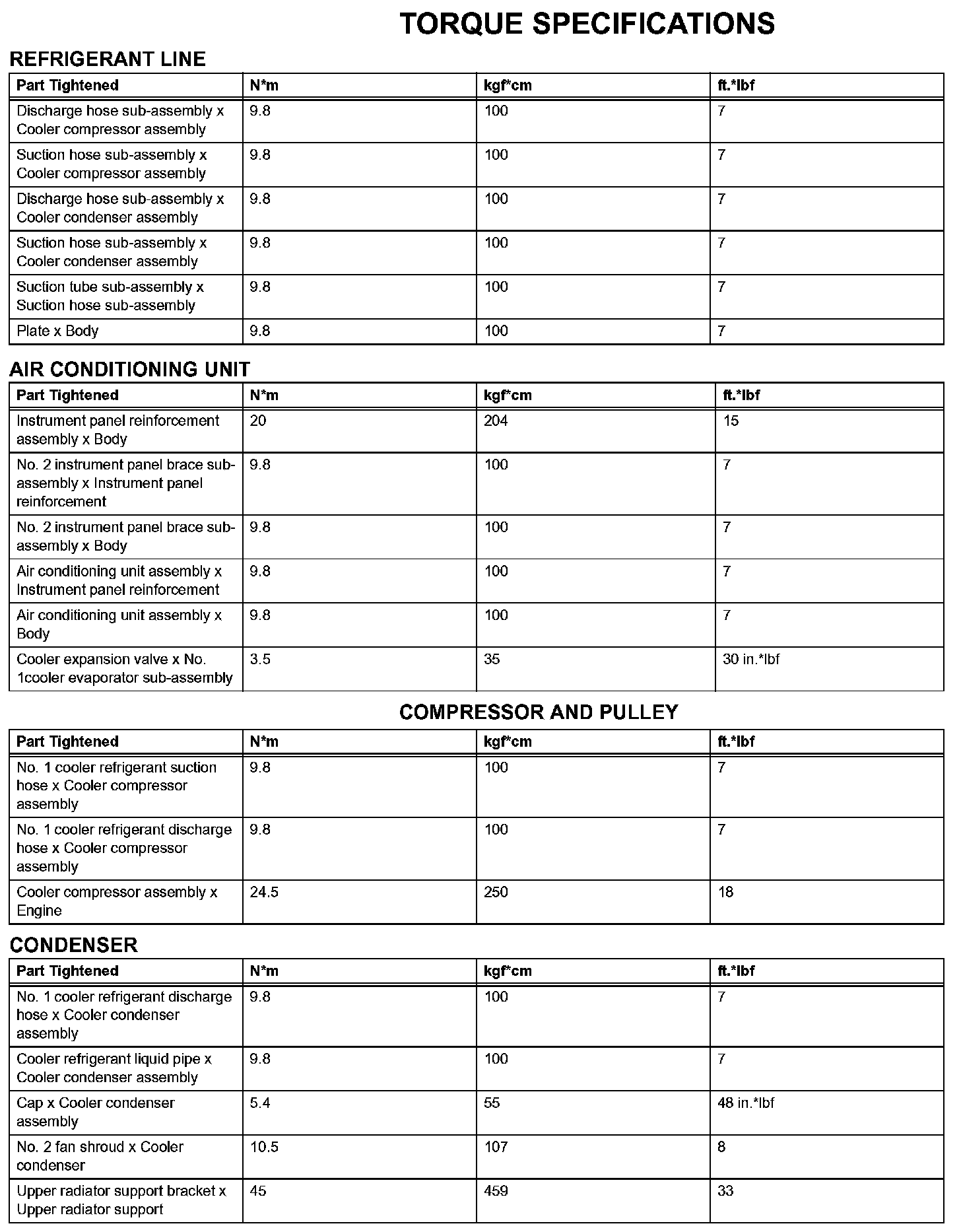 Air Conditioning-Torque Specifications: