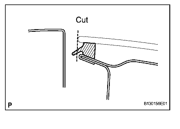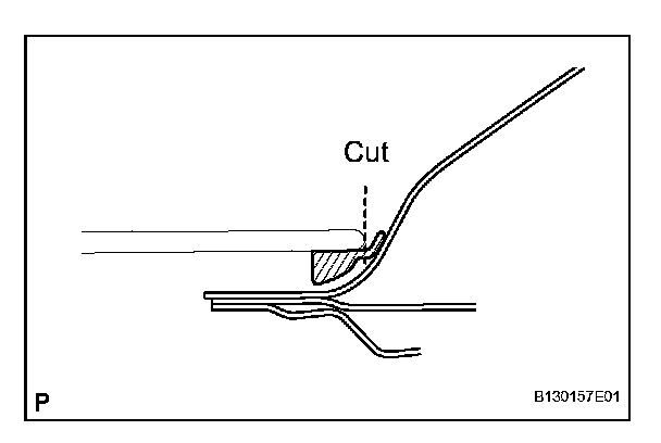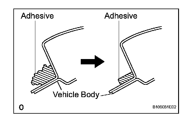 1. On the contact surface of the vehicle body, use a knife to cut away excess adhesive as shown in the illustration.