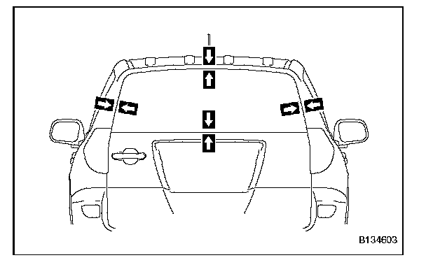 e. Place matchmarks over the glass and vehicle body on the locations indicated in the illustration.