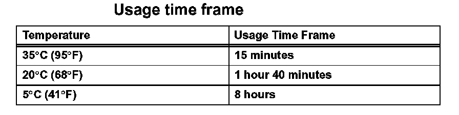 HINT: After cutting off the tip, use all adhesive with in the time written in the table.