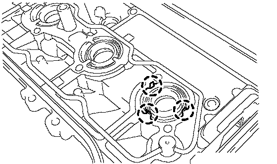 b. Using a screwdriver with its tip taped and a hammer, tap out the 6 spark plug tube gaskets.