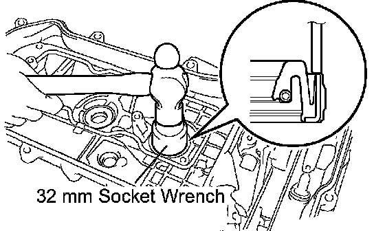 c. Using a 32 mm socket wrench, tap in 6 new spark plug tube gaskets to the head covers.