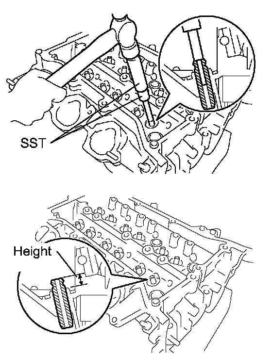 c. Using SST and a hammer, tap in 2 new tight plugs as shown in the illustration.