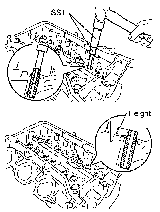 g. Using SST and a hammer, tap in a new guide bush to the specified protrusion height.