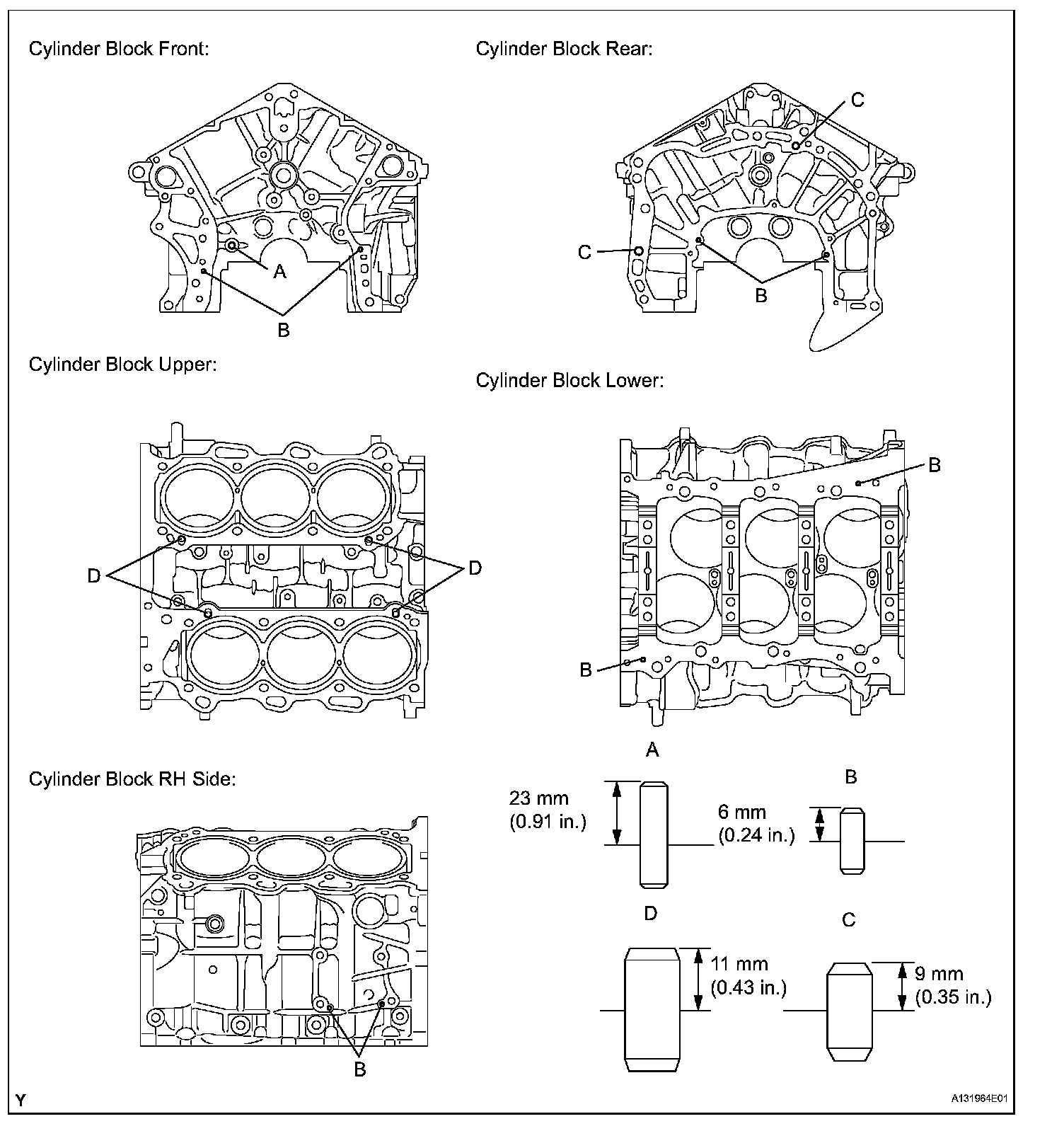 b. Using a plastic-faced hammer, tap in new straight pins to the cylinder block.