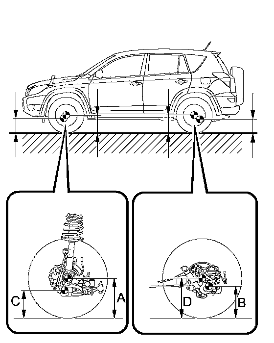 NOTICE: Before inspecting the wheel alignment, adjust the vehicle height to the specification.
