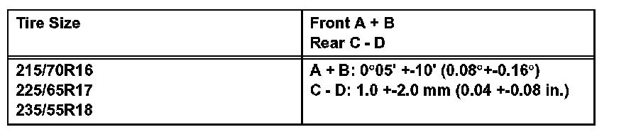 Standard Toe-In (unloaded vehicle):