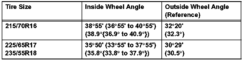 Standard Wheel Angle (unloaded vehicle):