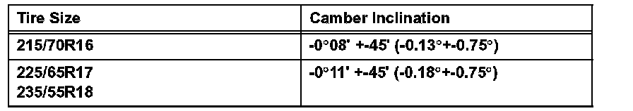 Standard Camber Inclination (unloaded vehicle):