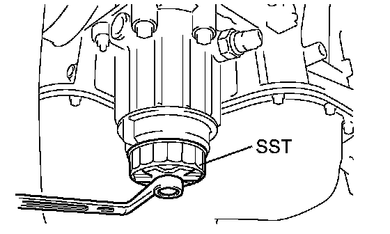 d. Using SST, remove the oil filter cap together with the oil filter element.