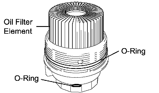 a. Remove the oil filter element and 2 O-rings from the oil filter cap.