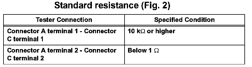 1. Disconnect connectors A and C, and measure the resistance between them.