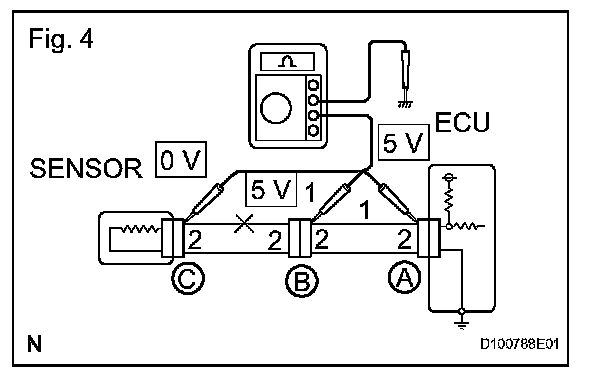 CHECK FOR OPEN CIRCUITa. For an open circuit in the wire harness in Fig. 1, check the resistance or voltage, as described.
