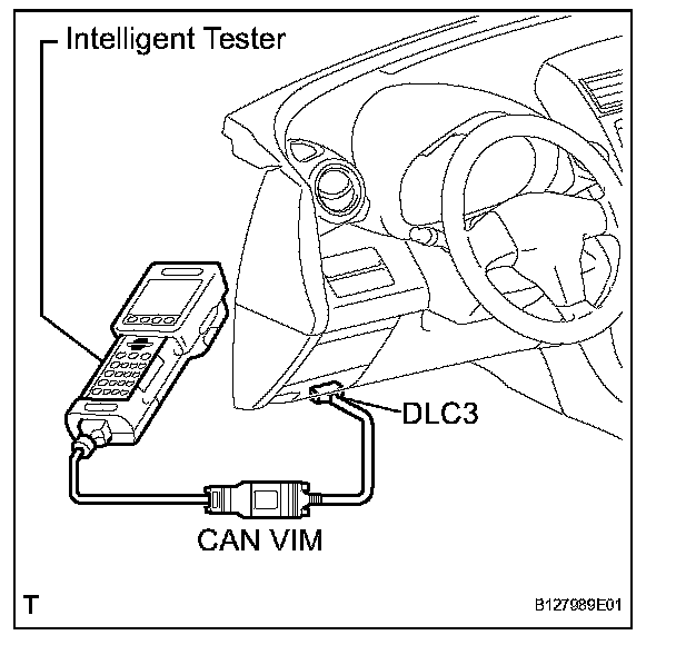 Connect the cable of the intelligent tester to the DLC3, turn the ignition switch ON and attempt to use the tester. If the display indicates that a communication error has occurred, there is a problem either with the vehicle or with the tester.