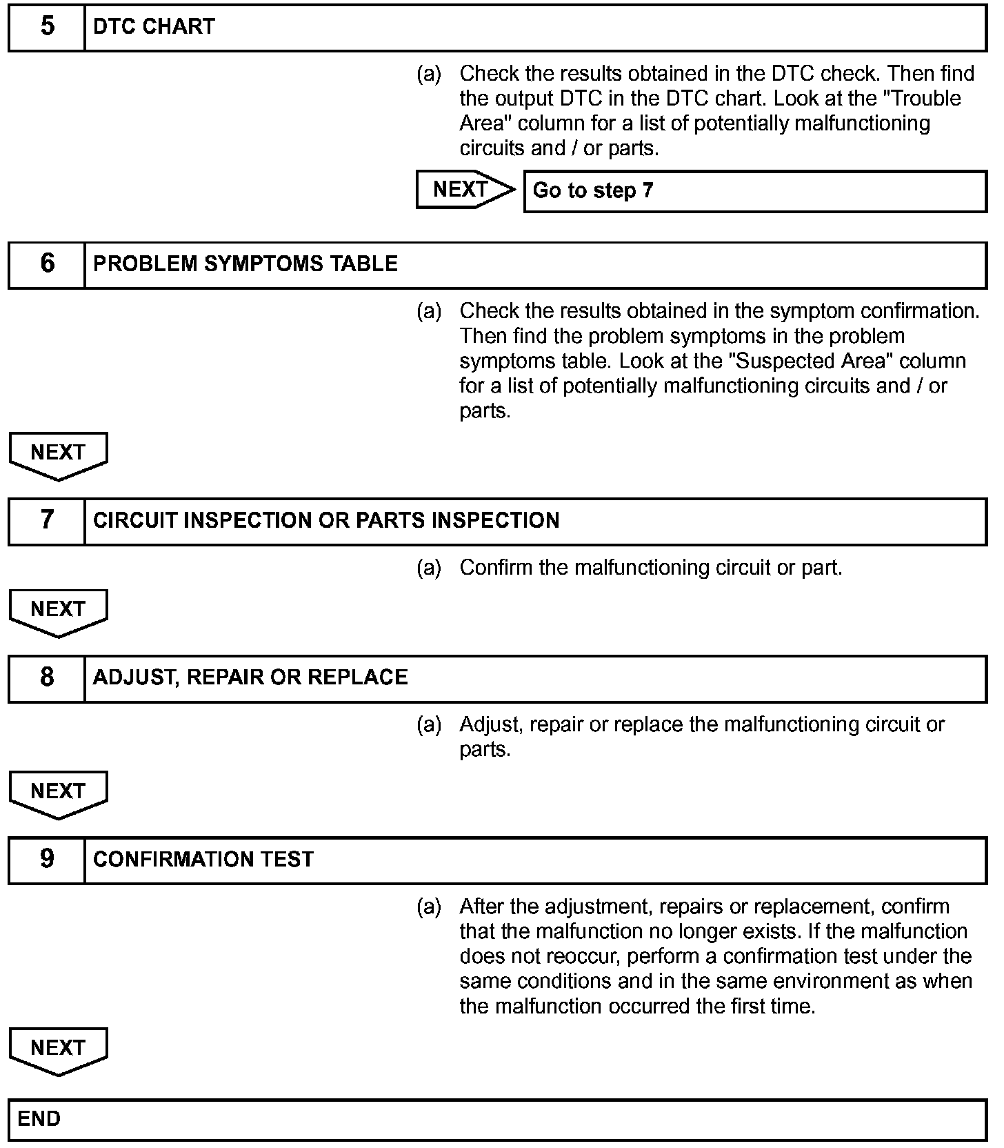 HINT: Perform troubleshooting in accordance with the procedures. The following is an outline of basic troubleshooting procedures. Confirm the troubleshooting procedures for the circuit you are working on before beginning troubleshooting.