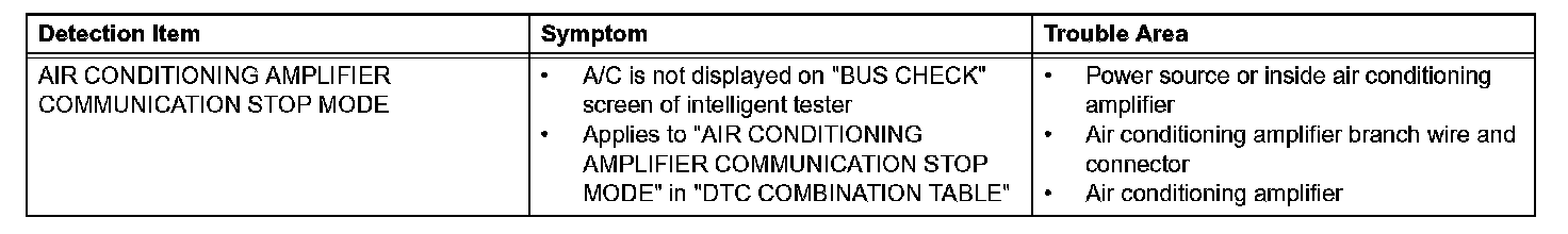 Air Conditioning Amplifier Communication Stop ModeDetection Item: