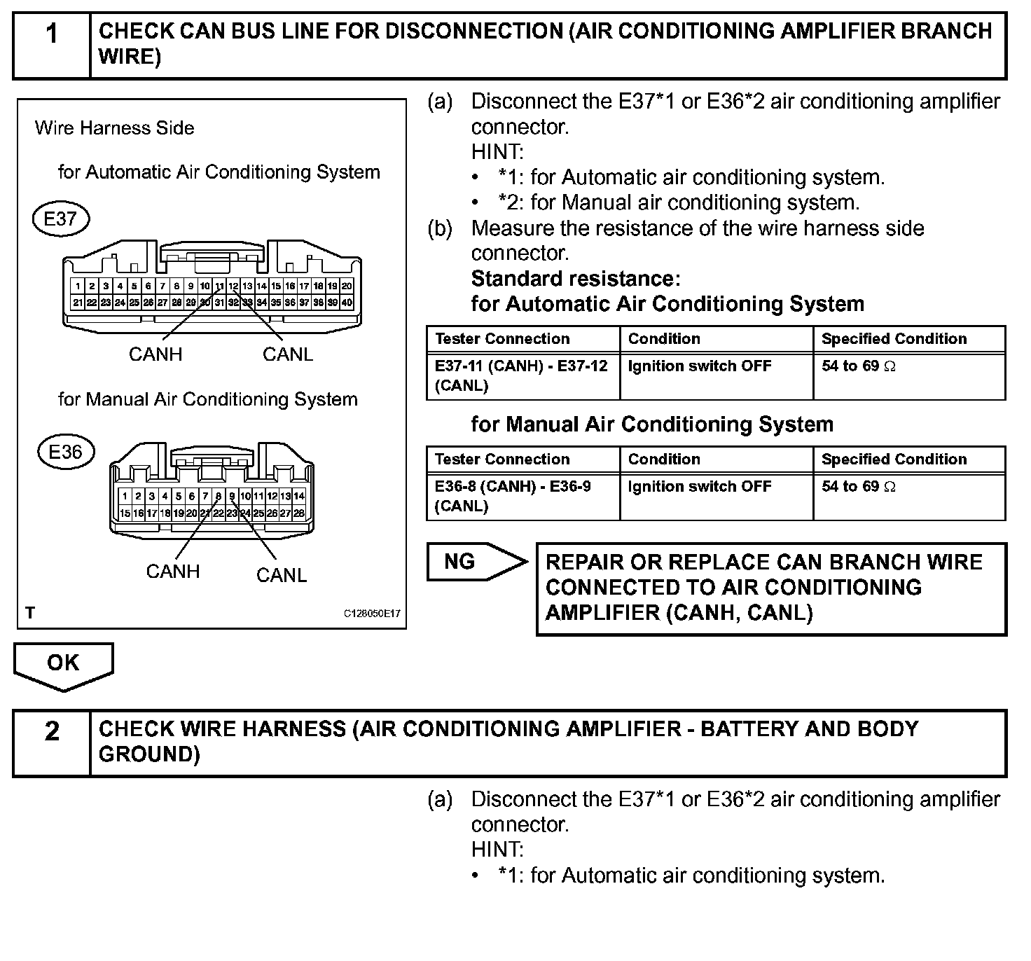 HINT: Operating the ignition switch, any switches or any doors triggers related ECU and sensor communication with the CAN, which causes resistance variation.