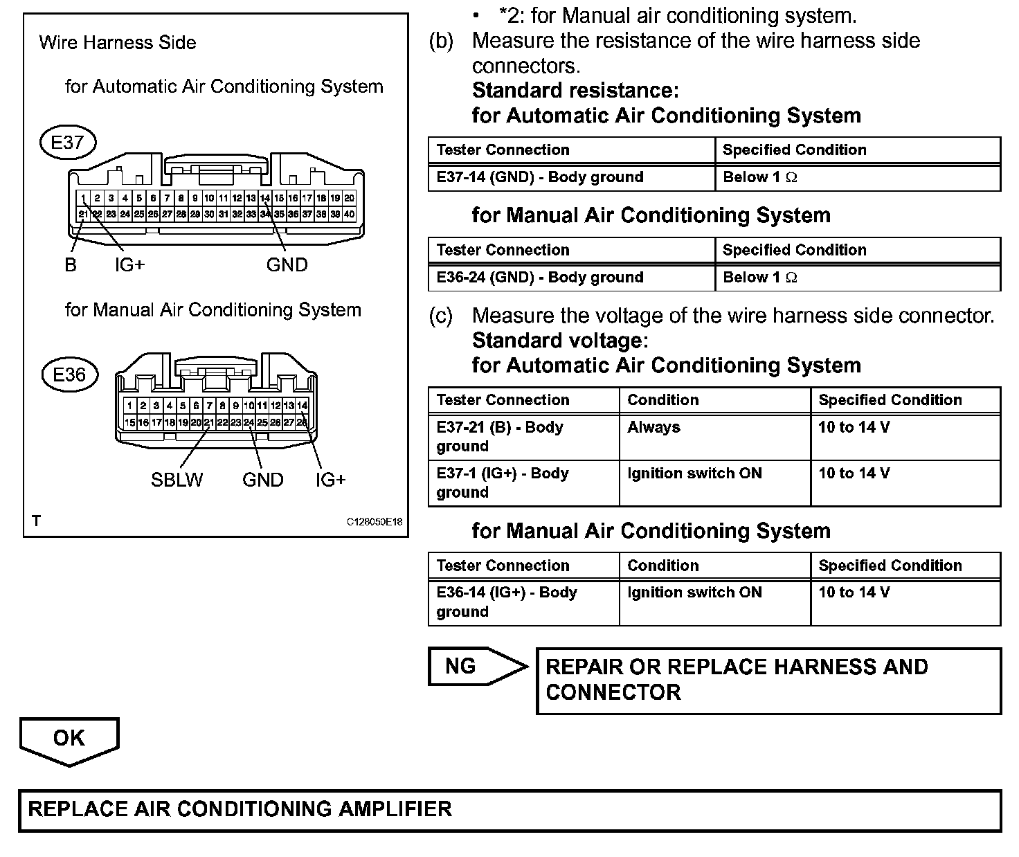 - Turn the ignition switch OFF before measuring the resistances of the main wire and the branch wire.