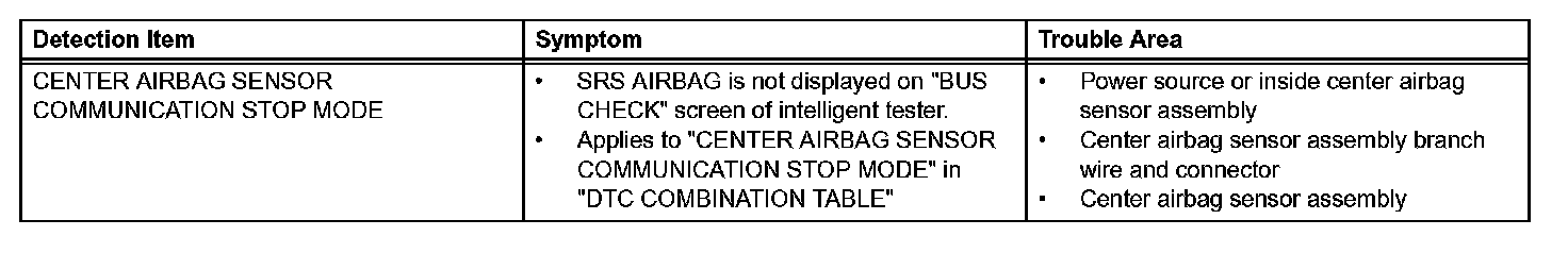 Center Airbag Sensor Communication Stop ModeDetection Item: