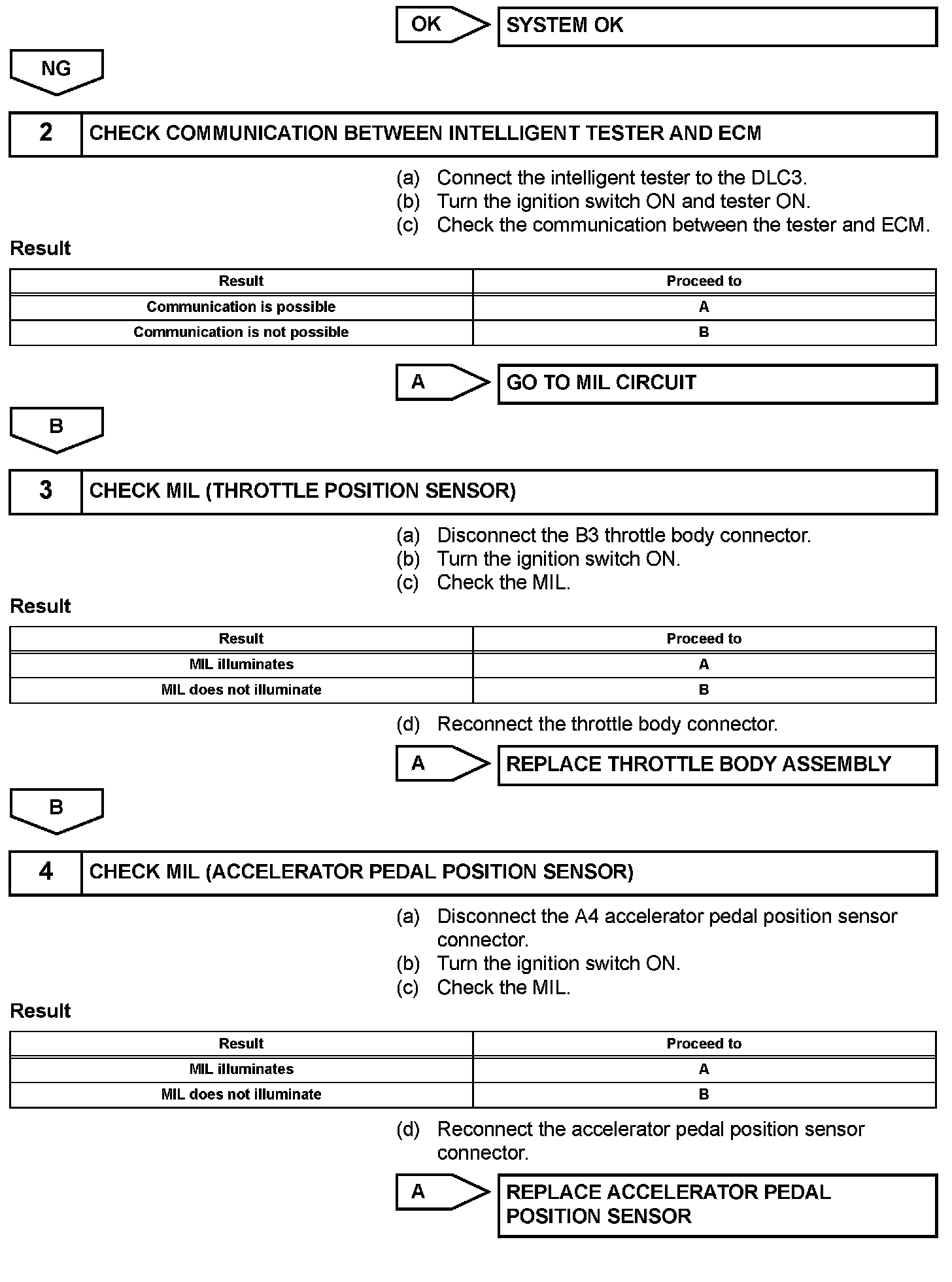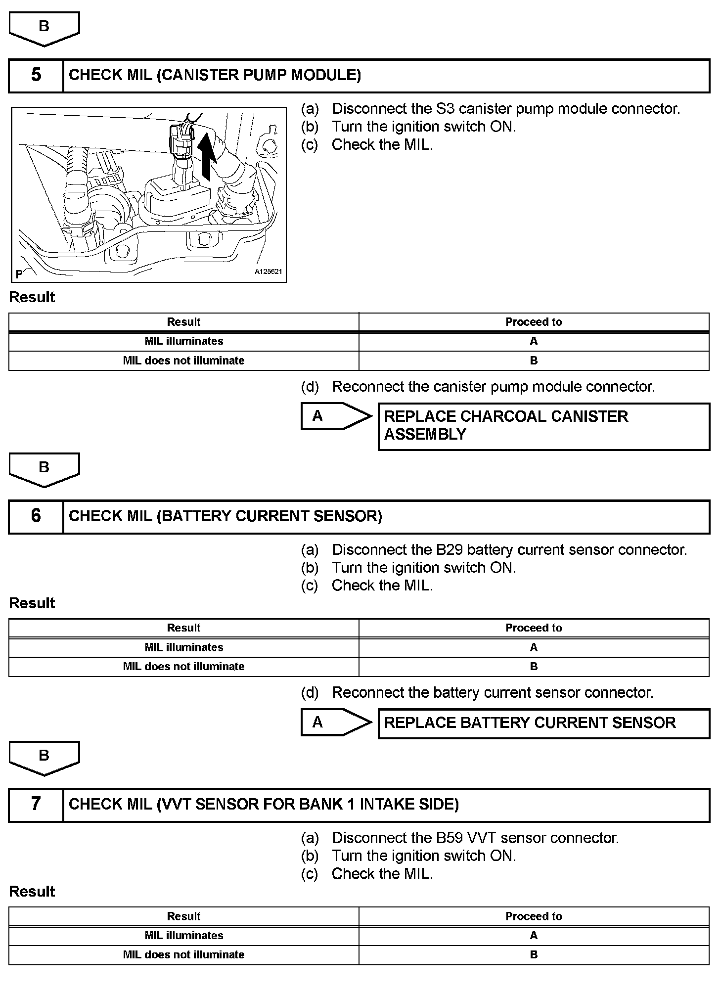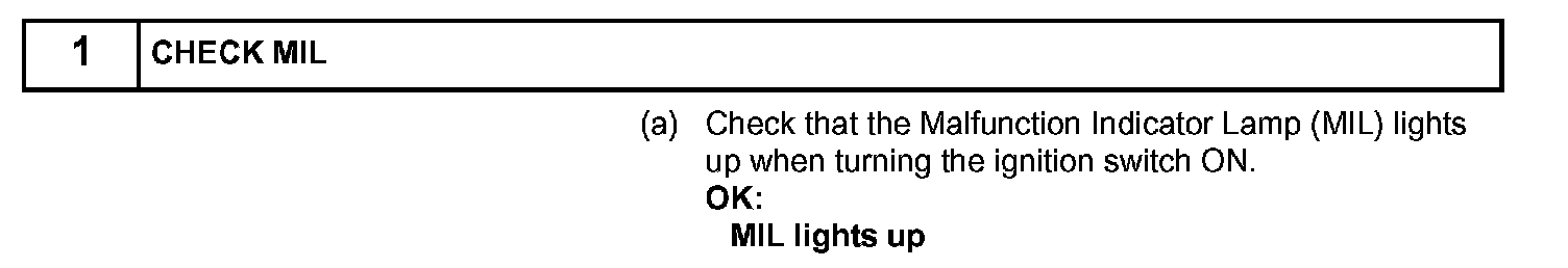 HINT: Under normal conditions, the MIL is illuminated for several seconds when the ignition switch is first turned ON. The MIL goes off when the engine is started.