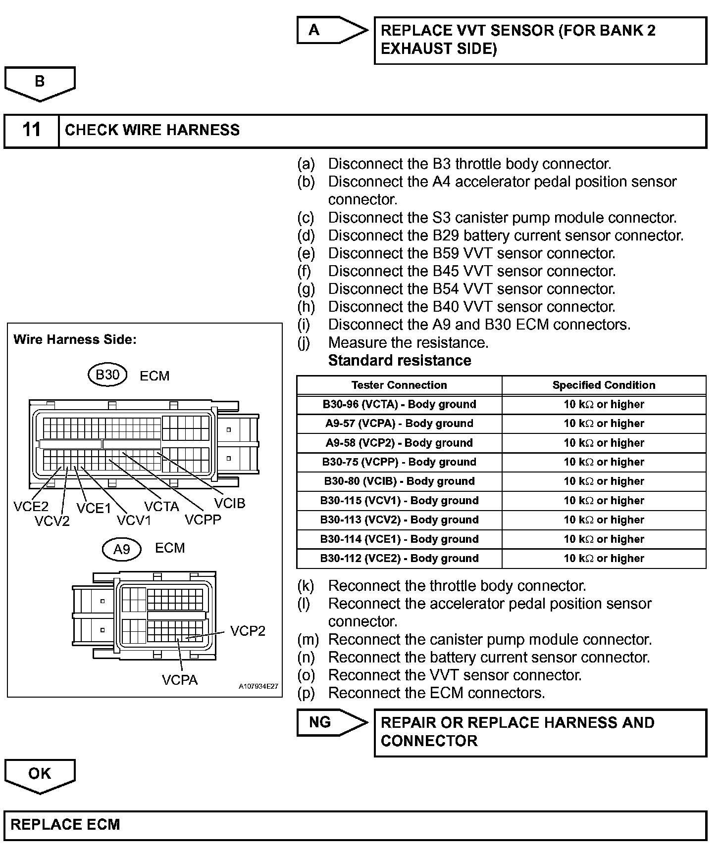 When the VC circuit is short-circuited, the microprocessor in the ECM and sensors that are supplied with power through the VC circuit are inactivated because the power is not supplied from the VC circuit. Under this condition, the system does not start up and the MIL does not illuminate even if the system malfunctions.