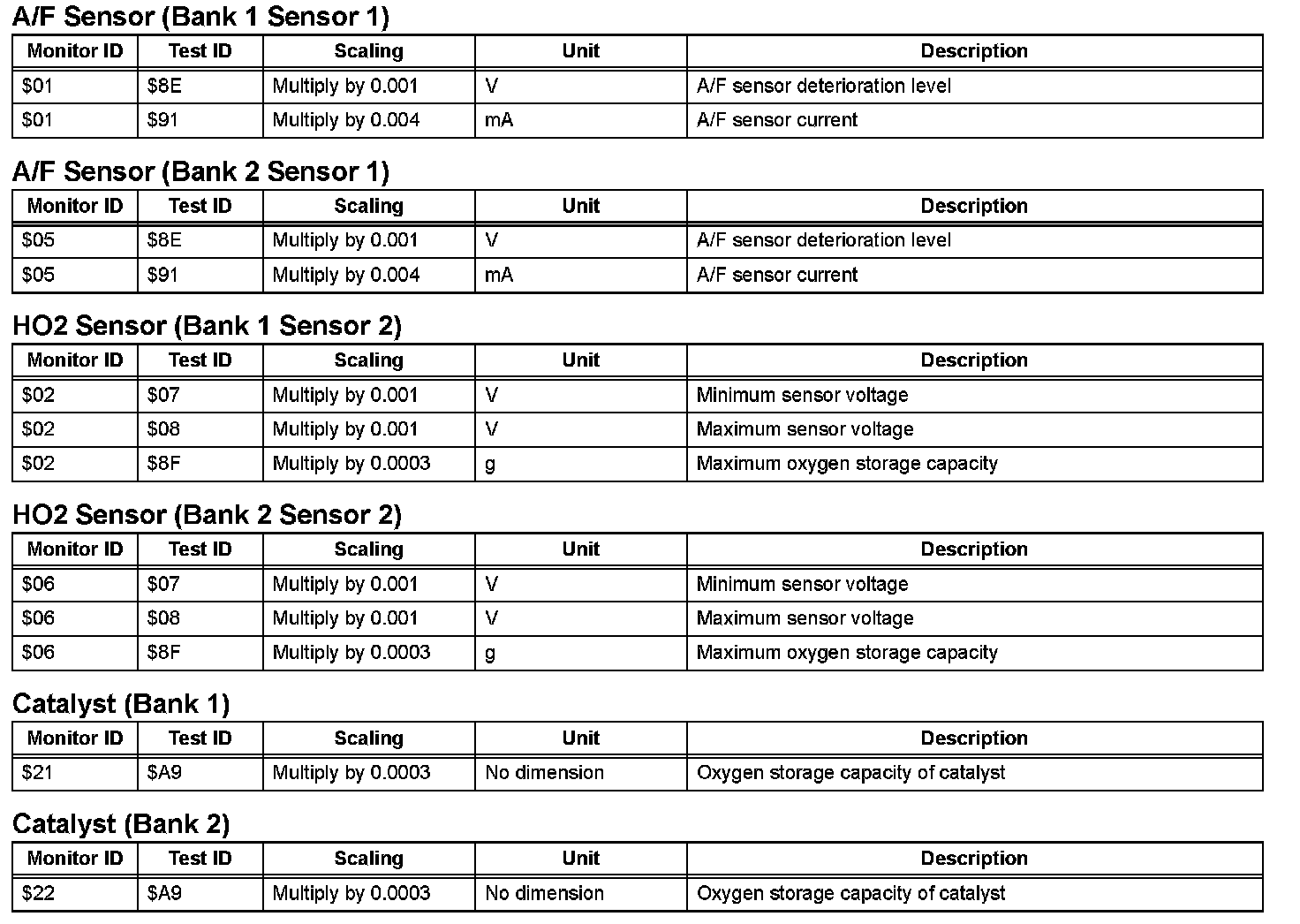 If you use a generic scan tool, multiply the test value by the scaling value listed.