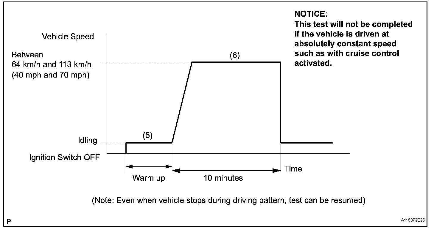 7. Drive the vehicle at 40 km/h (25 mph) or more for at least 2 minutes.