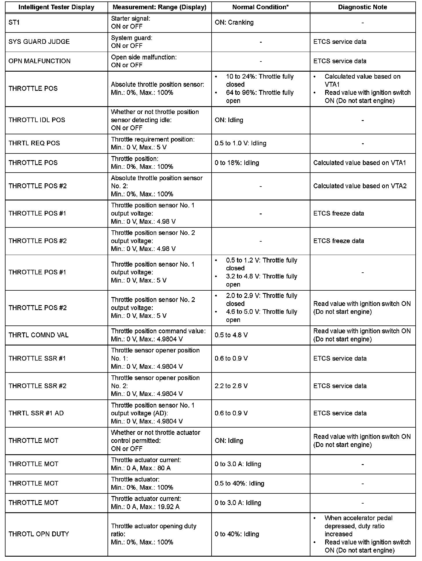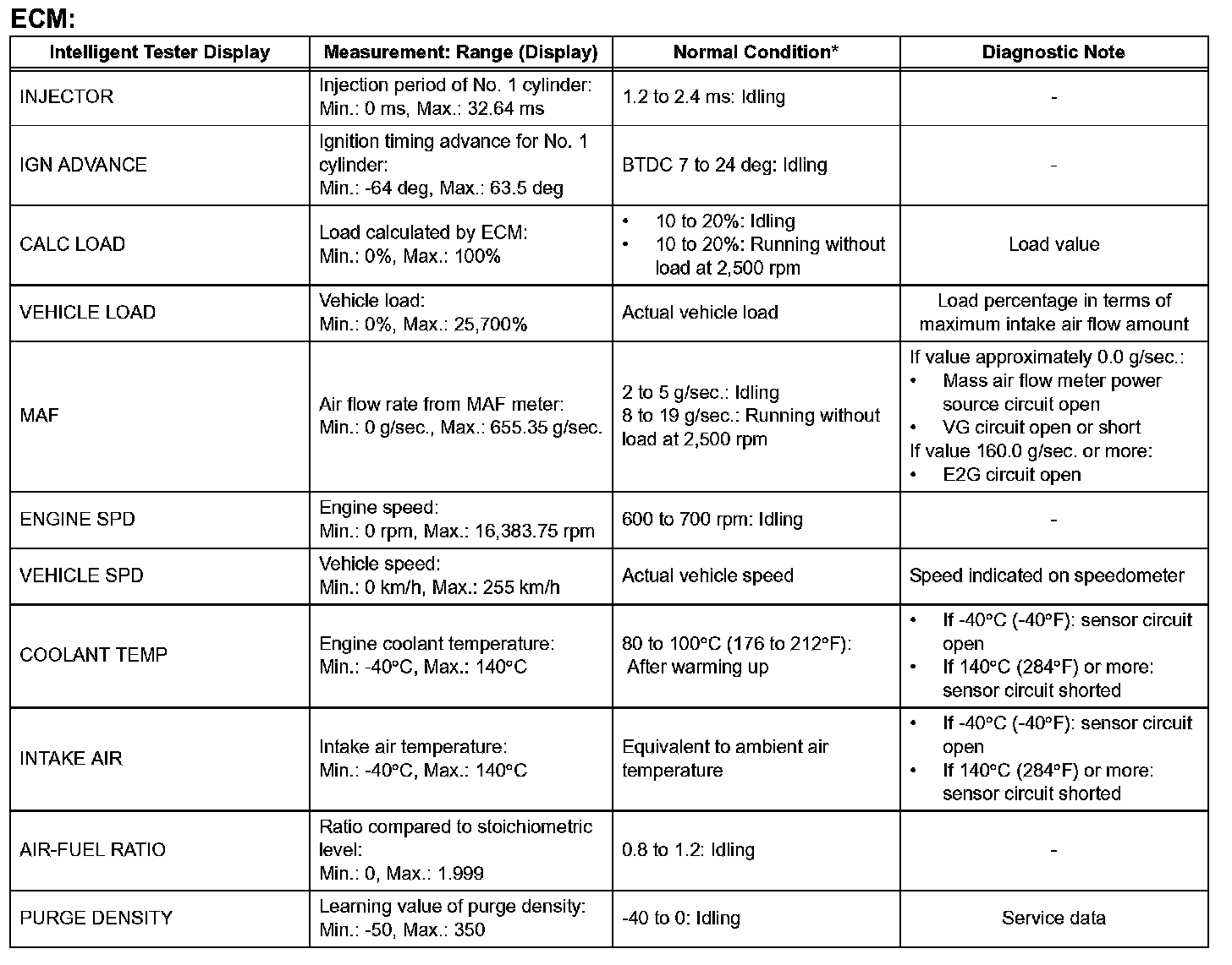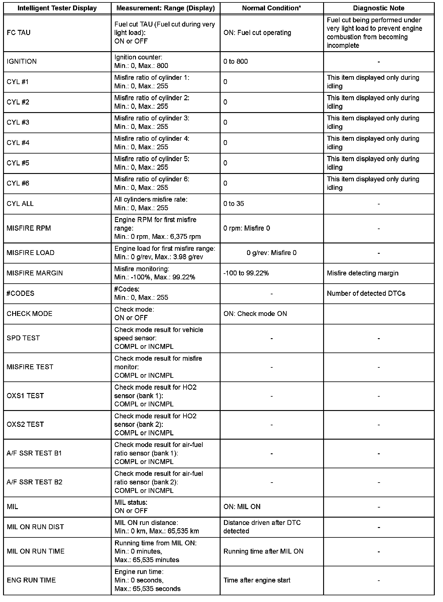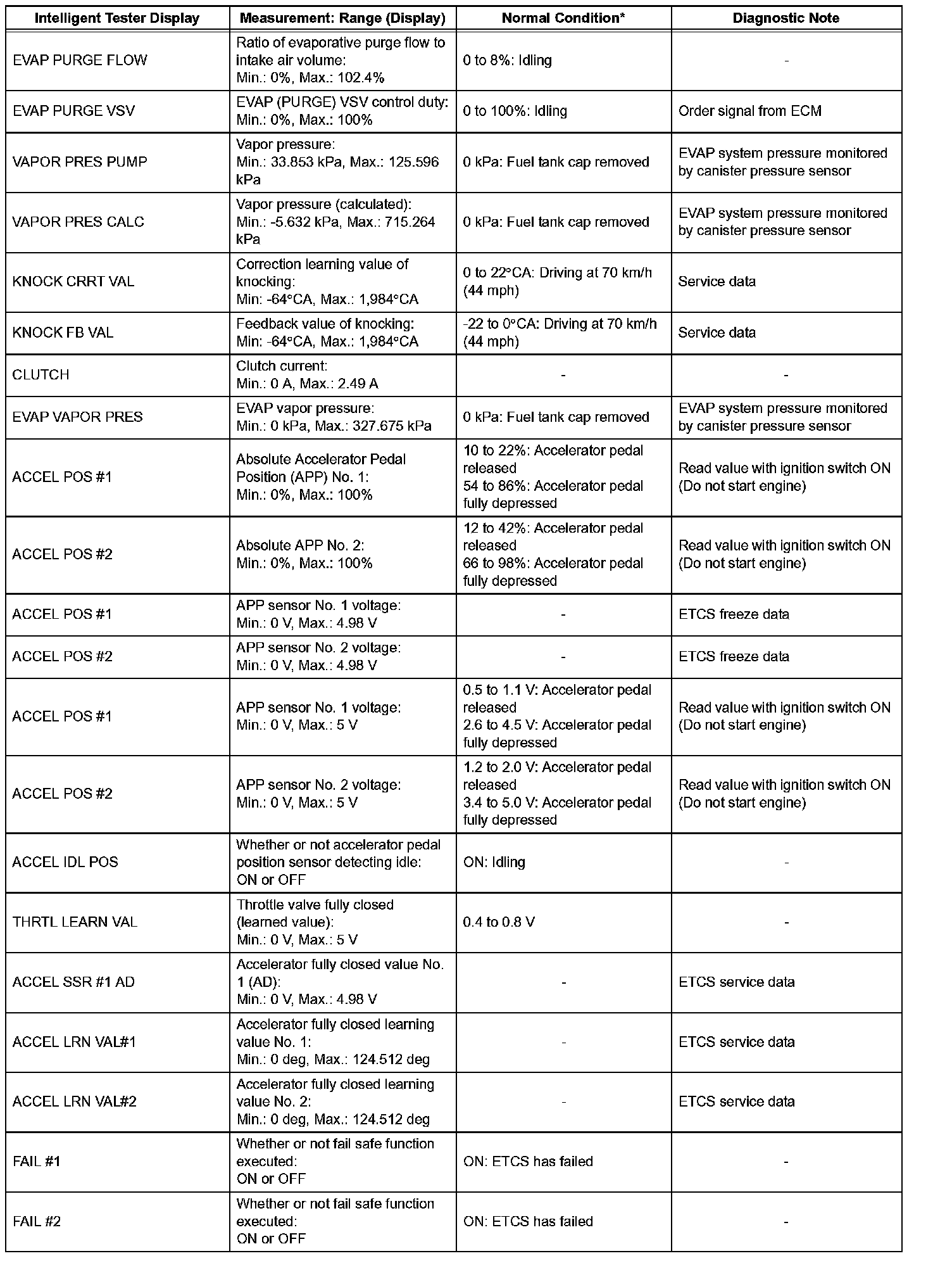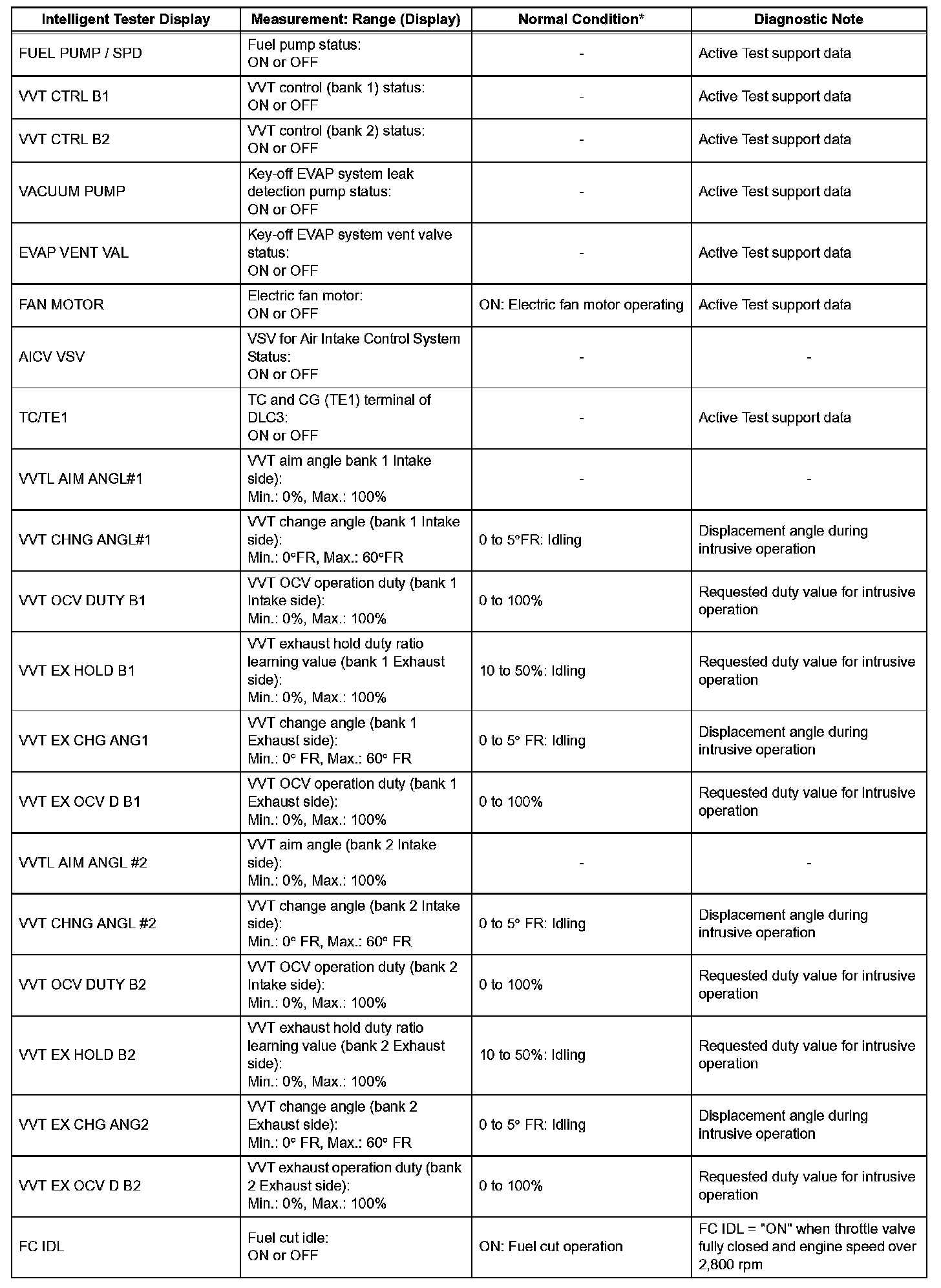 DATA LISTHINT: By reading the DATA LIST displayed on the intelligent tester, values can be checked, including those of the switches, sensors, and actuators, without removing any parts. Reading the DATA LIST as the first step of troubleshooting is one method of shortening diagnostic time.