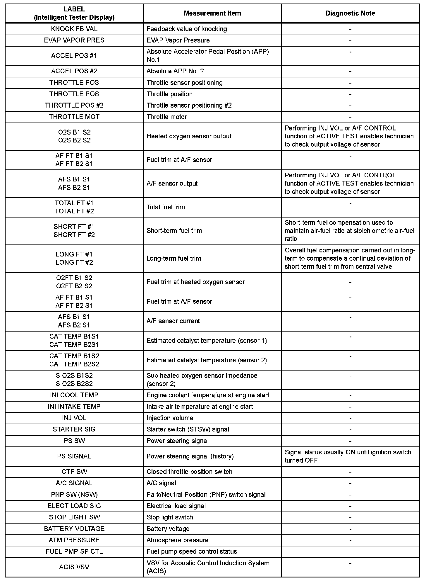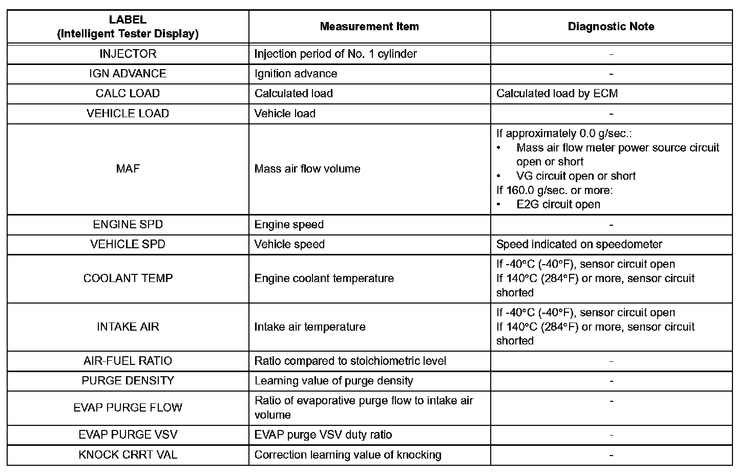 Freeze frame data records the engine conditions (fuel system, calculated load, engine coolant temperature, fuel trim, engine speed, vehicle speed, etc.) when a malfunction is detected. When troubleshooting, it can help determine if the vehicle was running or stopped, the engine was warmed up or not, the air-fuel ratio was Lean or Rich, and other data from the time the malfunction occurred.