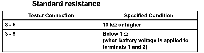If the result is not as specified, replace the relay.