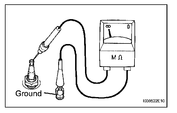 If the result is 10 M Ohms. or less, clean the plug and measure the resistance again.