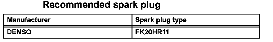 Electrode gap for new spark plug: 1.0 to 1.1 mm (0.039 to 0.043 in.)