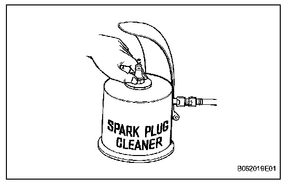 HINT: Only use the spark plug cleaner when the electrode is free of oil. If the electrode has traces of oil, use gasoline to clean off the oil before using the spark plug cleaner.