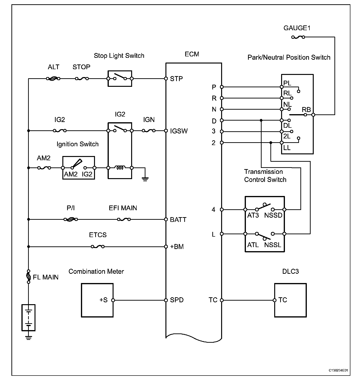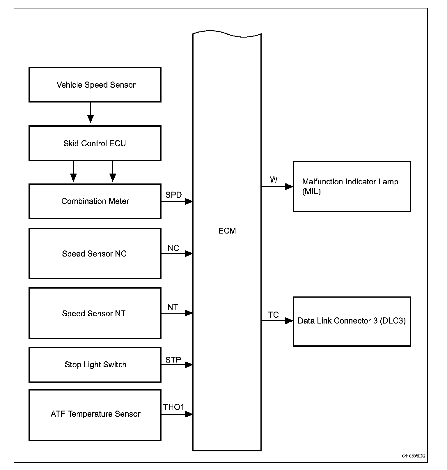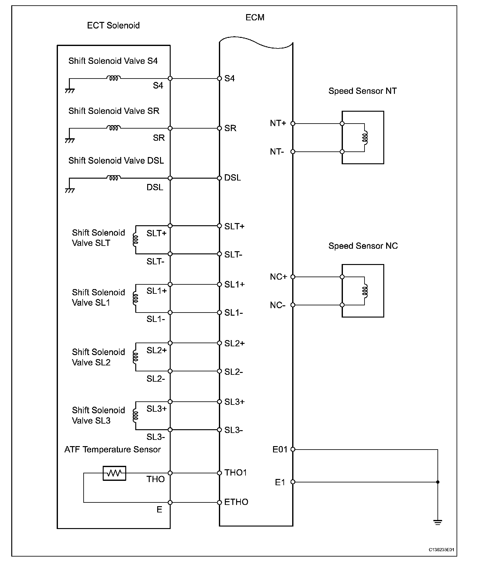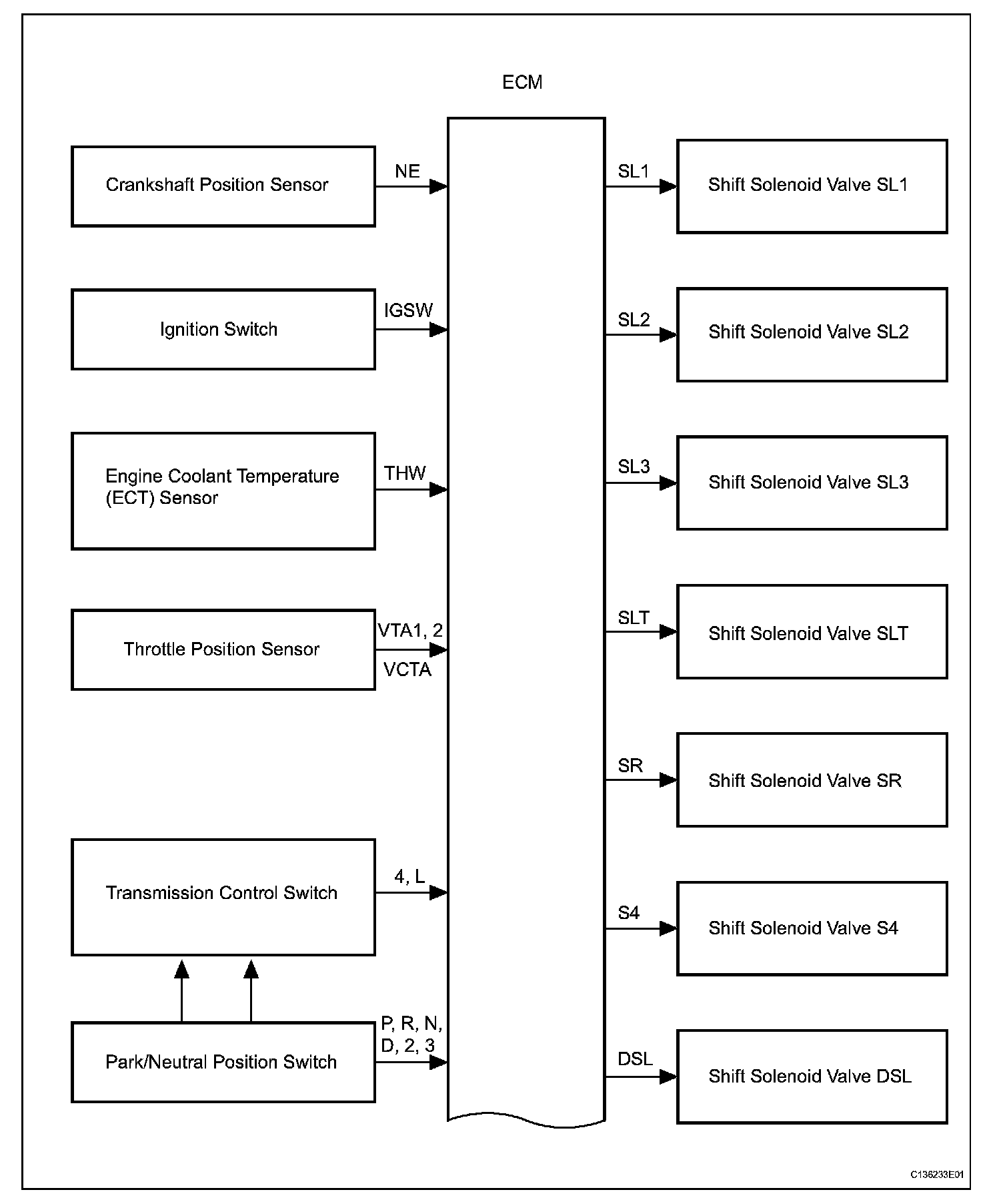 The configuration of the electronic control system in the U151E automatic transaxle is as shown in the charts.
